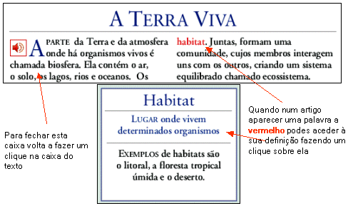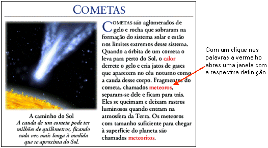 vermelha. Se fizeres clique sobre cada uma destas palavras, abre