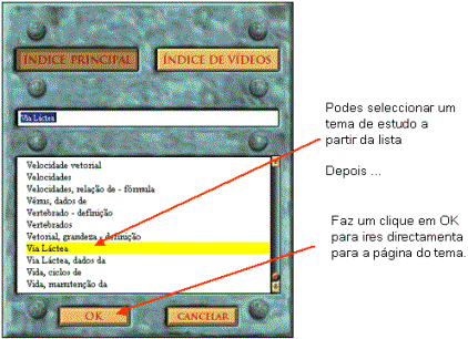 com um clique, o botão "ÍNDICE DE VÍDEO".