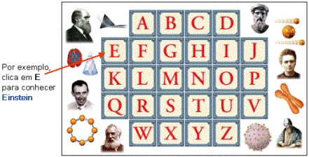 de alguns dos mais famosos cientistas. É a secção "QUEM